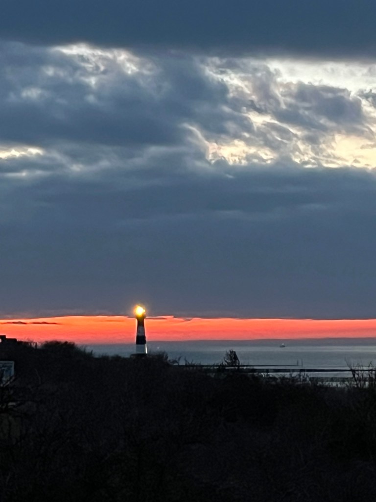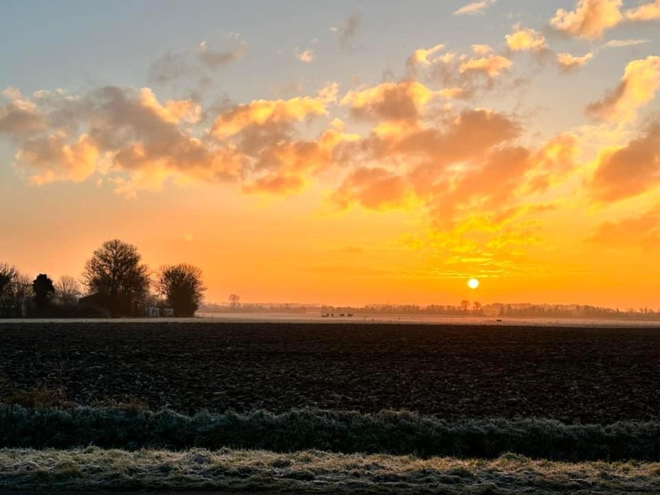 Vanochtend stond de lucht in vuur. Het was koud met een snijdende wind maar warm gekleed met muts en handschoenen kon ik intens genieten van het prachtige kleurenschouwspel. Rood geel oranje met een wonderbaarlijke streep erboven.