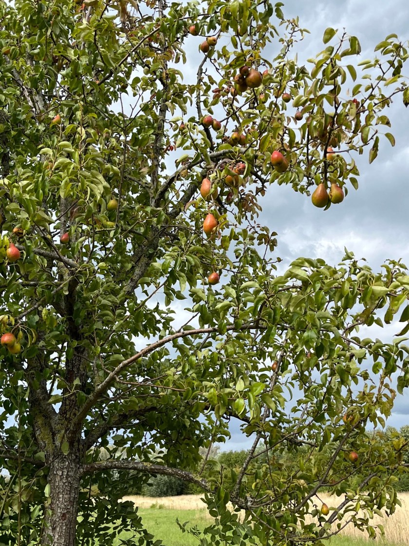 Tijdens mijn dagelijkse wandelingen snoep ik overigens ook van ‘vreemd’ wild fruit: heerlijke zwarte bramen en kleine mooie peertjes met rode wangetjes. Ik zal nog eens bij de beheerder van het natuurgebied navragen welk ras dit is. Een perenboom met deze peertjes zou een mooie aanvulling in onze kleine ‘boomgaard’ zijn. Daar staat al een conference peer maar die draagt dit jaar nog geen vruchten.