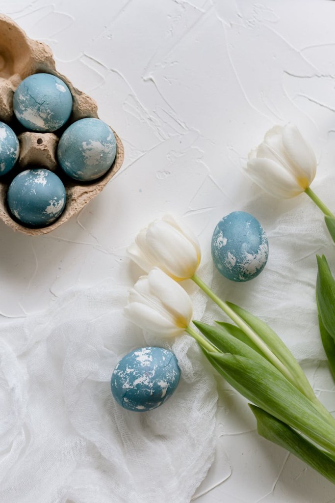 Omdat ik pasen traditiegetrouw toch een beetje sfeer in huis breng heb ik ook nog wat ideeën voor versieringen aan takken en op tafel opgedoekt. Wel met mijn lievelingskleur blauw in een hoofdrol.